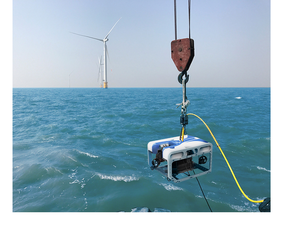 海上風(fēng)電場多設(shè)立在離岸區(qū)域,易受臺風(fēng)、地震、海水腐蝕等環(huán)境的影響,需定期進行運維檢測,水下機器人設(shè)備能對海上風(fēng)電場進行水下樁基構(gòu)件運維、水下結(jié)構(gòu)腐蝕處理、海纜及附屬設(shè)施檢測等,降低海上風(fēng)力發(fā)電組的運維成本,提升效益。
